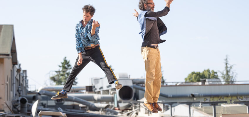L’un signe sa langue et tape sur des tambours. L’autre écrit son français par delà les mers et gratte son banjo. Pétris de rythmes de danses, le duo Façon-Façon se rencontre dans la poussière du bal. Chacun irrigué de sa pratique de musiques traditionnelles nordestines et réunionnaises entre autres, ils se font extracteurs de jus, l’instant d’un concert ! Un jus unique où le goût de leur poésie sensible se confond en geste et mélodie, aux saveurs d’universel. Une polyphonie à 2 voix et 4 mains où le chant-signe rejoint la chanson populaire incluant alors l’inaudible, l’instant d’un spectacle ! C’est dans cet audacieux contraste entre la transe libératrice et l’hyper sensibilité que façon-façon nous livre un duo en équilibre !