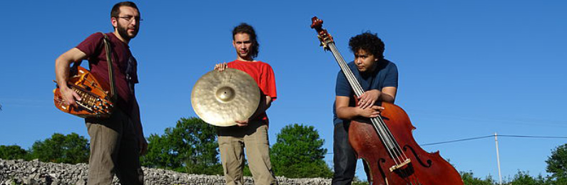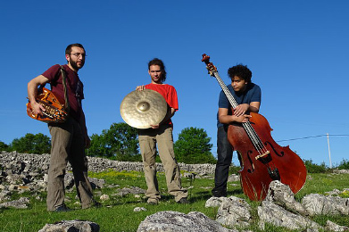 Bastien Fontanille (vielle à roue électro-accoustique, banjo, chant) // Henri Lassémillante (contrebasse, kayamb, chant) // Élie Akkouche (batterie)