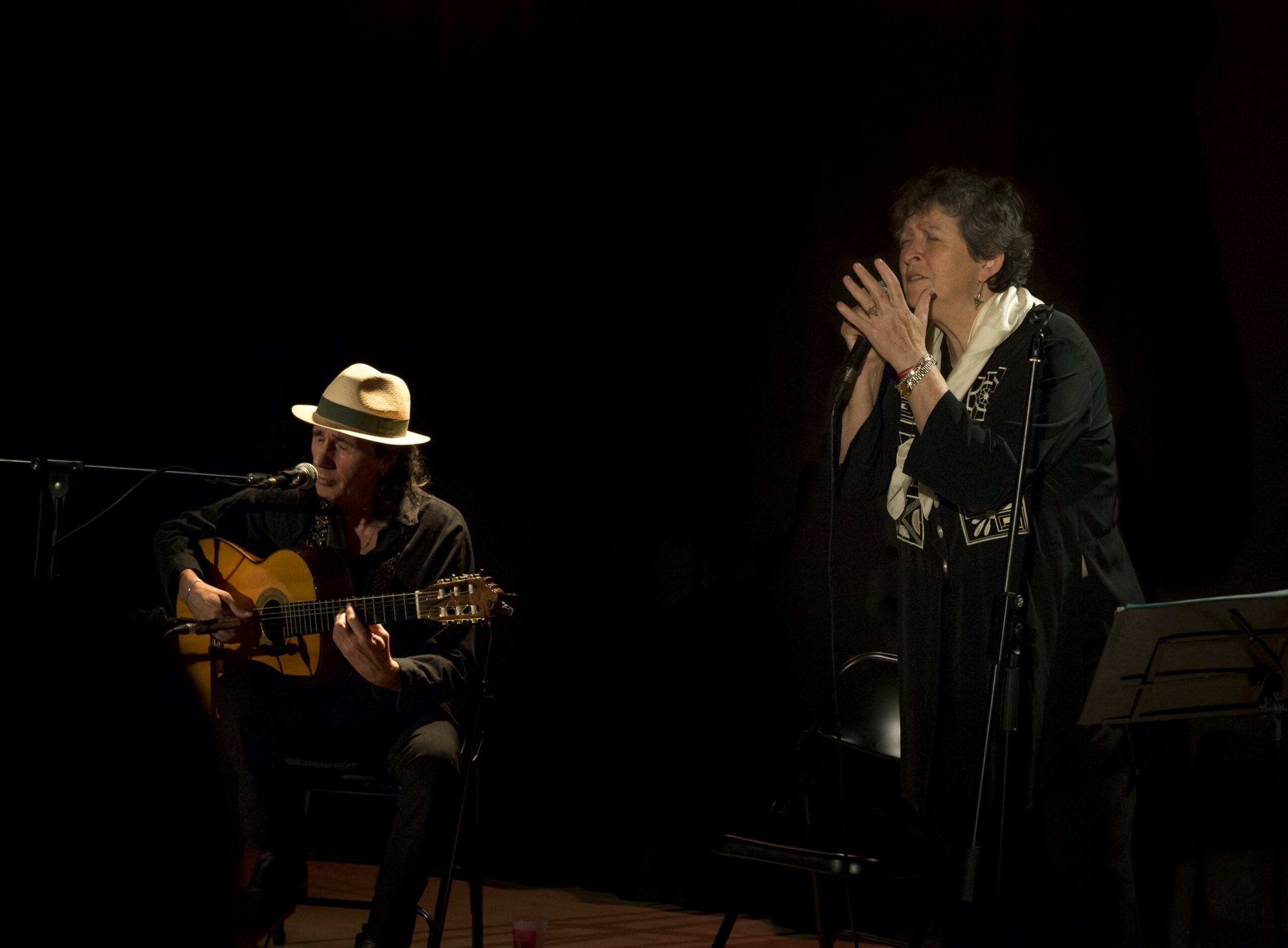 Un homme à la guitare et à la voix qui l’accompagne avec douceur.