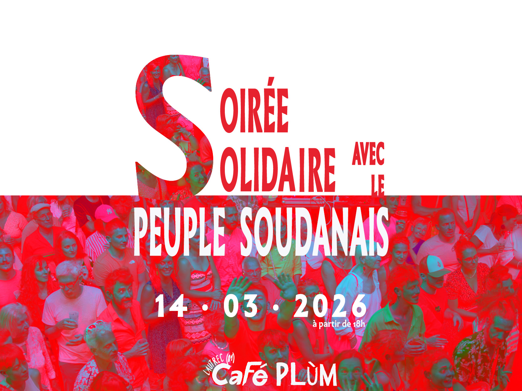 Le Café Plùm / Association Ma Case ainsi que les collectifs et artistes mentionné·es ci-dessous, souhaitent apporter leur soutien par une soirée de solidarité avec peuple soudanais qui subit une guerre dévastatrice, et sa diaspora. Les fonds récoltés seront reversés à la cagnotte Urgence humanitaire Soudan de l’association KOUSH.